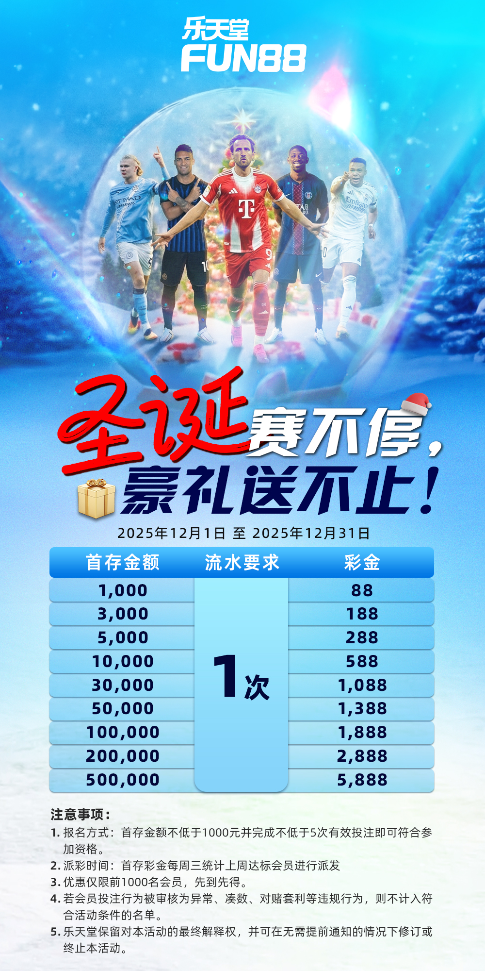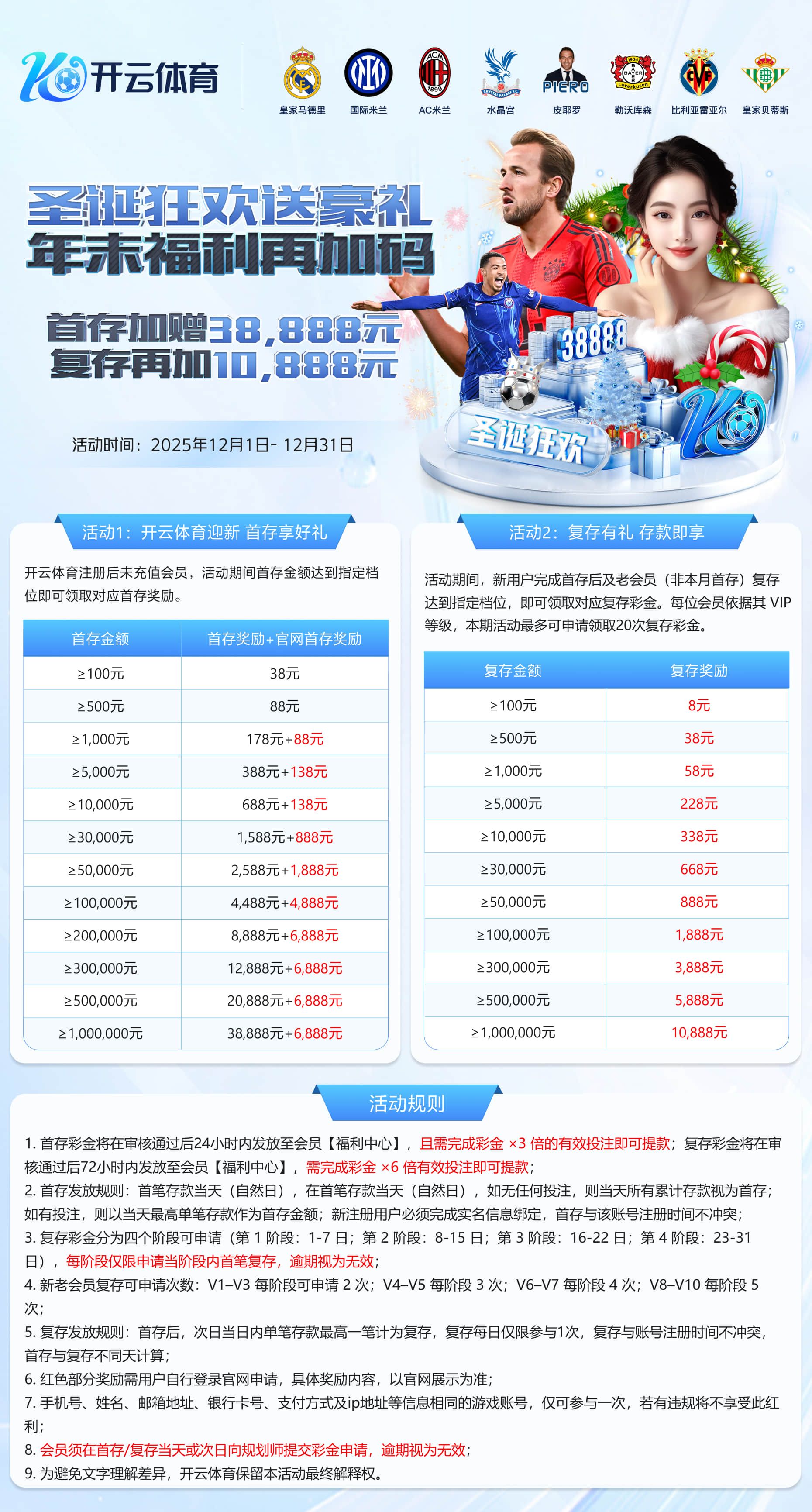 开云12月首存1000送178+88+88,1倍水,流水满5千加送218元。以前注册现在首存也可以。