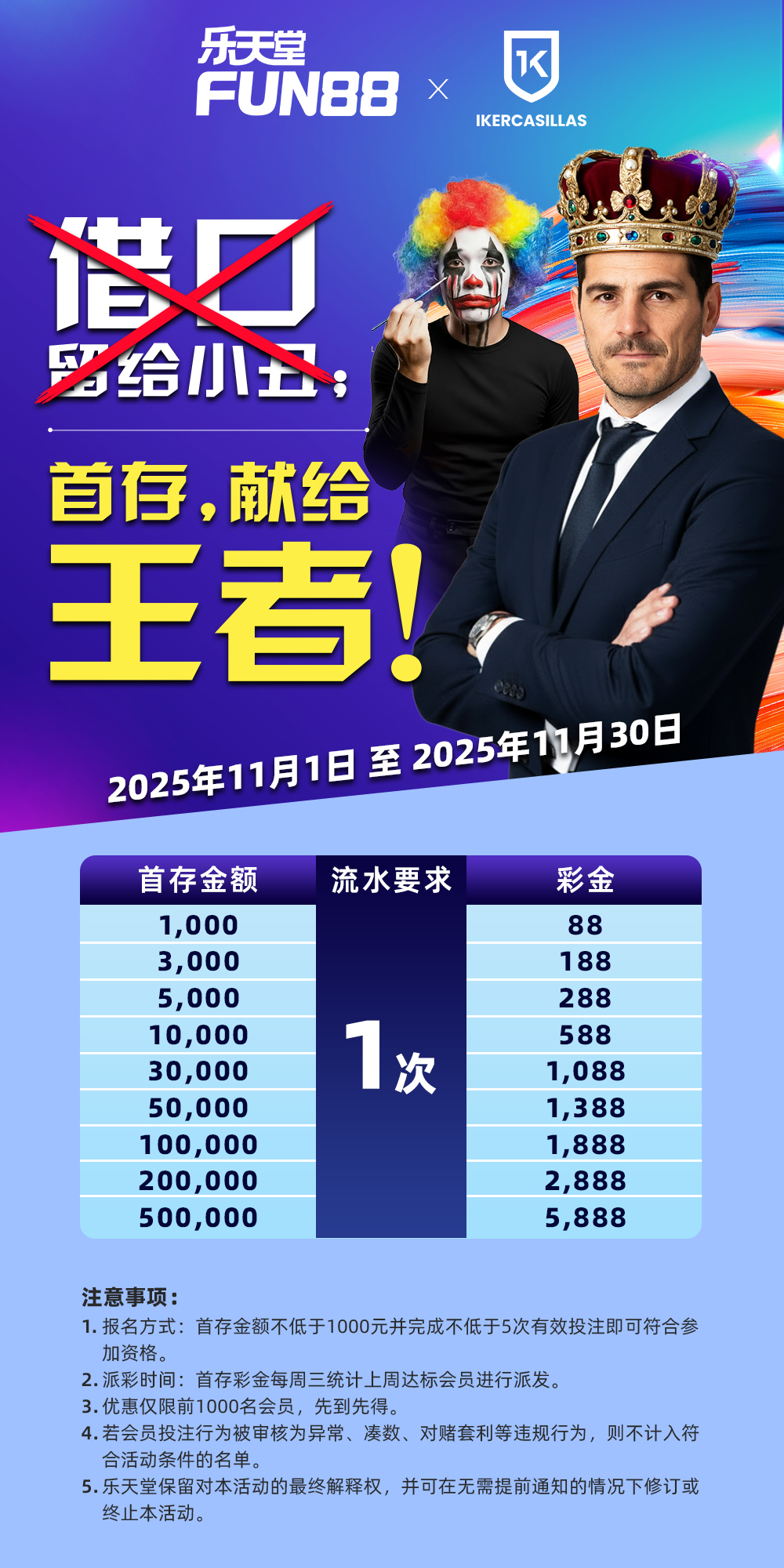 ➊新客户首存送金,1千送88元,3千送188元,类推如下图,完成1倍流水次周3自动到账,1倍水提。